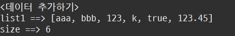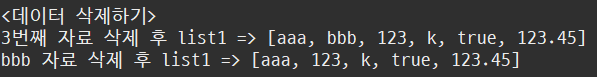 System.out.println("bbb 자료 삭제 후 list1 => " + list1);
