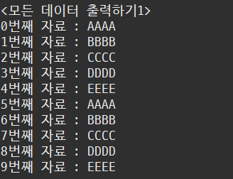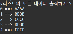 System.out.println("<리스트의 모든 데이터 출력하기1>");