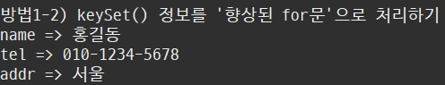 방법 1-2) keySet() 정보를 '향상된 for문'으로 처리하기