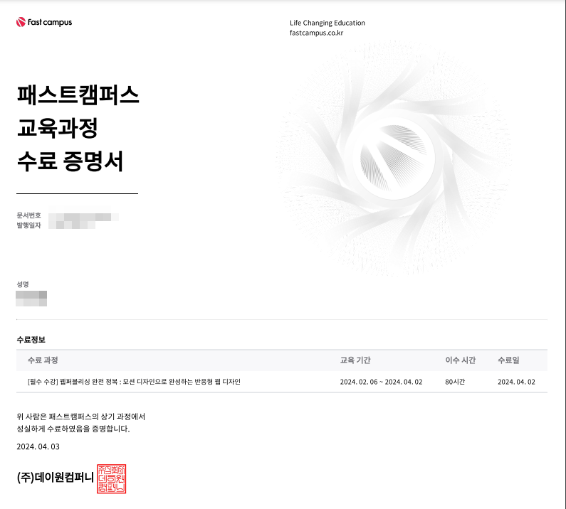 교육과정을 이수한 후에 받는 수료증은 참 기분이 좋다.