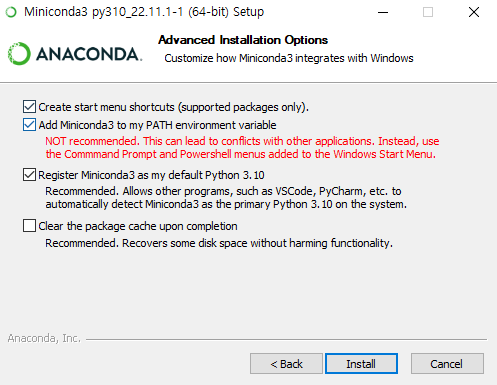 ※ Anaconda Prompt를 실행할 때 Powershell로 실행하면 안된다.