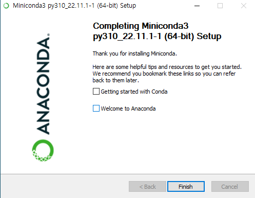 1. 미니콘다 프로그램 다운로드 홈페이지