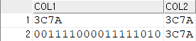 INSERT INTO TEMP08 VALUES('3C7A', HEXTORAW('3C7A'));