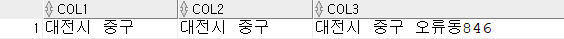 INSERT INTO TEMP01 VALUES('대전시 중구','대전시 중구','대전시 중구 오류동846');