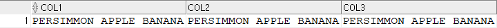 INSERT INTO TEMP03 VALUES('PERSIMMION APPLE BANANA', 'PERSIMMON APPLE BANANA');