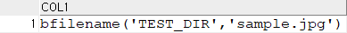 INSERT INTO TEMP09 (COL1) VALUES (BFILENAME('TEST_DIR','sample.jpg'));
