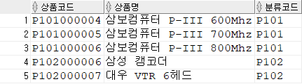 SELECT 상품코드, 상품명, 분류코드, 분류명