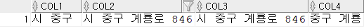 SUBSTR('대전시 중구 계룡로 846',3,35) AS COL3,