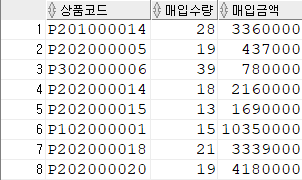 **매입테이블에서 매입된 상품의 분류코드의 종류 및 매입수량합계