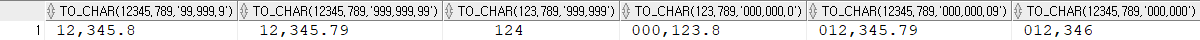 - 'fmt'는 TO_CHAR에 사용되는 숫자형식 지정 문자열과 동일