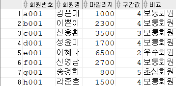 사용예) 회원테이블에서 대전에 거주하는 회원정보를 조회하시오.