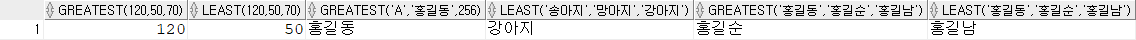SELECT CHR(90), ASCII('KOREA'), ASCII('대한민국'),CHR(ASCII('KOREA')),CHR(ASCII('대한민국'))